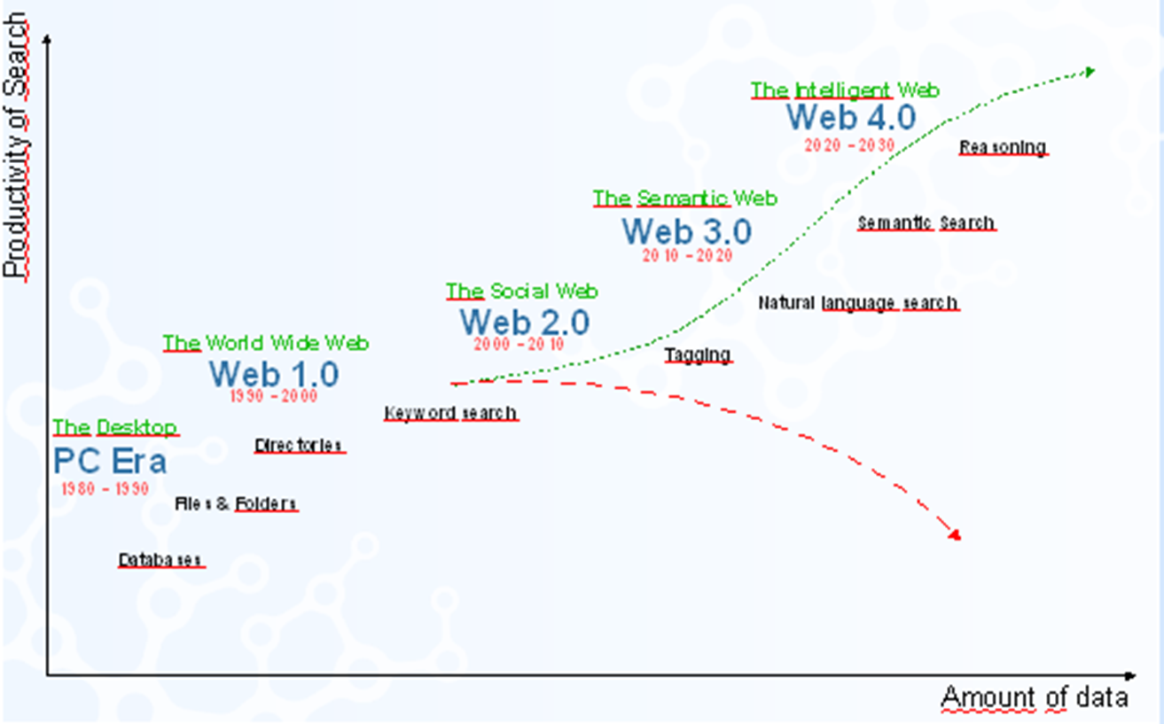 INTRODUCCIÓN. El internet es una red de redes donde se pueden comunicar de un lugar al otro, pero este ha evolucionado gracias a los aportes y avances tecnologicos. La web inicia con la web 1.0 que era estática luego pasa a la web 2.0 ya es dinámica hay participación de los cibernautas y aparece la web 3.0 que se centra en el contenido semántico, Y finalmente se habla de la web 4.0. |
